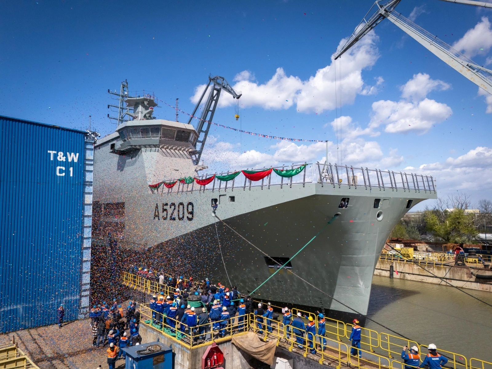 A cerimónia de flutuação da Plataforma Naval Multifuncional, o futuro “NRP D. João II”, da Marinha Portuguesa, decorreu nesta terça-feira, nos estaleiros da DAMEN, em Galați, na Roménia. O navio conhecido por porta-drones, pelas capacidades de operar este tipo de aparelhos aéreos e marítimos, tem data de entrega prevista para o primeiro semestre de 2027. É o único na União Europeia.